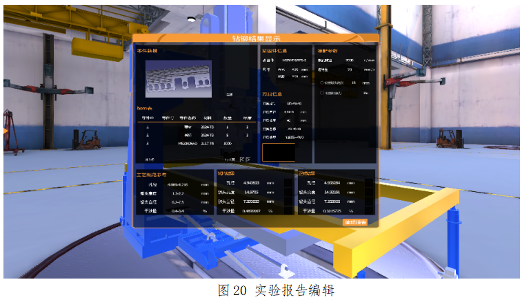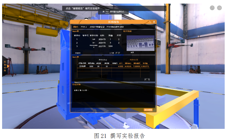 如图20和图21所示,壁板钻铆后进入编辑报告页面。报告记录实验任务、实验过程数据和结果(如图20所示),学生可查看实验过程记录,点击“编辑报告”,如图21所示,学生根据实验结果,独立分析思考结果的成因,提出措施,有利于学生探究能力和工程问题分析能力的培养。编辑报告后在线提交实验报告,返回主页。