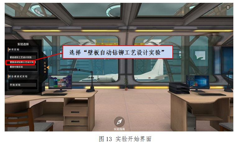 点击实验选择页面的“壁板自动钻铆实验”,如图13所示,进入实验环境。
