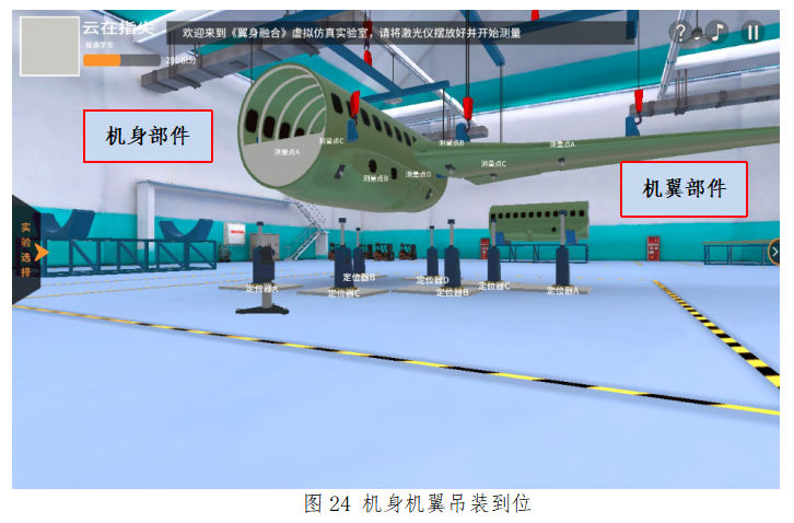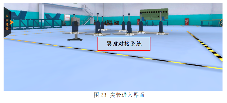 展示翼身对接实验系统:初始进入时,系统展示翼身对接系统(如图23所示)。使学生了解实验框架,对翼身对接有初步认识。
