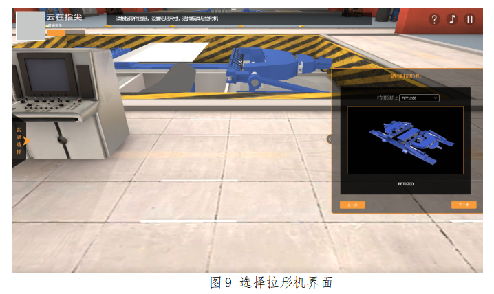学生在线下通过计算和查找手册选择合适的拉形机,在实验系统中进入拉形机库,选择合适的拉形机型号,如图9所示。