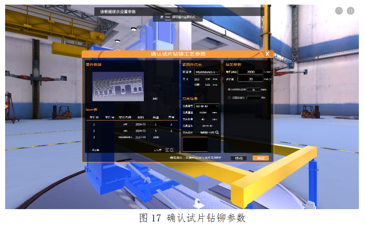 输入参数后点下一步,如图17所示,进入确认试片钻铆参数页面,确认参数后进入试片钻铆演示,如图18所示。