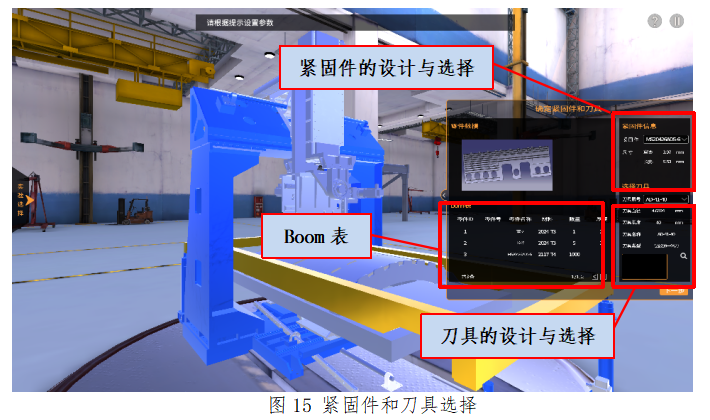 如图15所示,进入紧固件和刀具选择页面,确认相应的紧固件信息,并选择合适的刀具。学生需要结合课程及检索资料来进行刀具的选择。